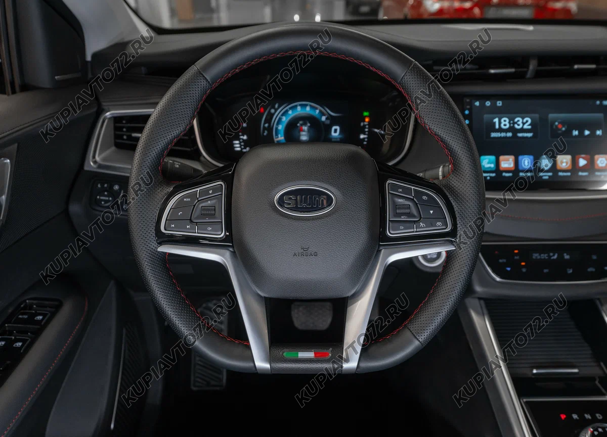 - Отделка кожей рулевого колеса